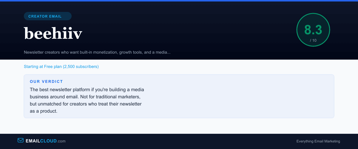 beehiiv occupies a unique position in the email landscape. It is not the best email marketing platform — it is not trying to be. It is the best platform for building a newsletter-driven media business. The combination of a clean writing experience, multi-stream monetization, referral-driven growth tools, and creator-focused analytics creates a package that no traditional email tool matches.