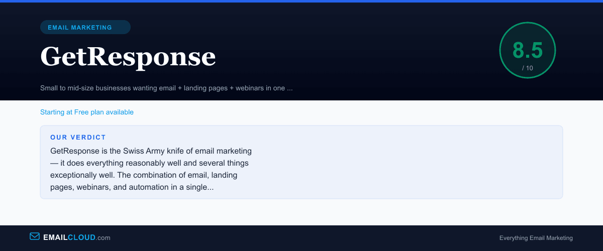 GetResponse is the Swiss Army knife of email marketing — it does everything reasonably well and several things exceptionally well. The combination of email, landing pages, webinars, and automation in a single platform makes it hard to beat on value, especially for businesses that would otherwise need to cobble together three or four separate tools.