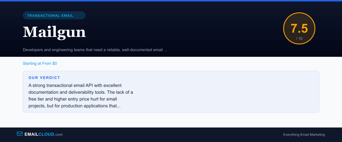 If you need to send transactional email from an application and want a well-documented API with strong deliverability, Mailgun is a solid choice. If you need the cheapest possible sending or a marketing email platform, look elsewhere.
