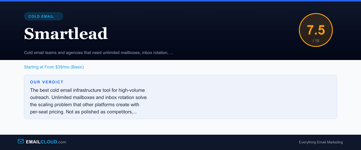 Smartlead solves the cold email scaling problem better than any other tool in the market. Unlimited mailboxes, automated inbox rotation, built-in warmup, and a unified master inbox create an infrastructure layer that makes high-volume cold email sustainable and affordable. The pricing is aggressive — you get more sending capacity per dollar than any per-seat competitor.