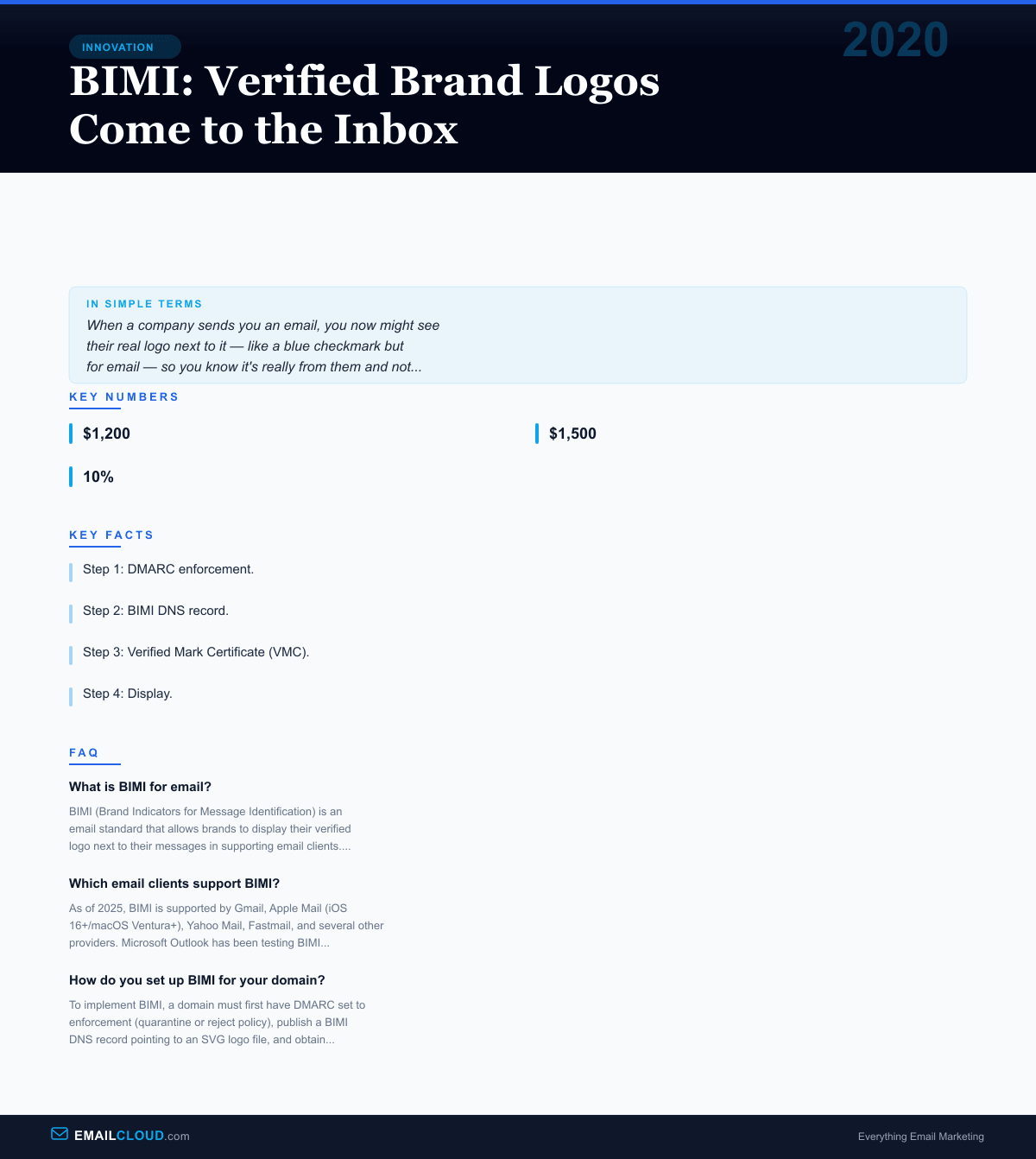 The promise was simple — when a verified brand sends you an email, you see their actual logo right there in the inbox, next to the subject line. No more guessing if that email is really from your bank. The logo is the proof.