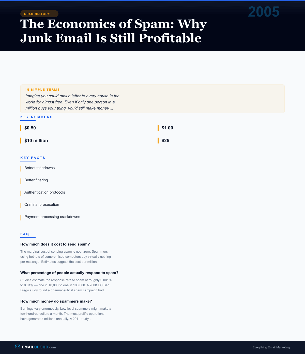 The Economics of Spam: Why Junk Email Is Still Profitable — visual summary and key facts infographic